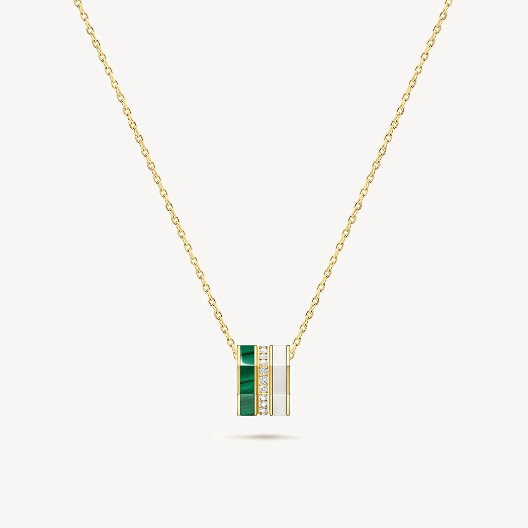 – Gemstone: Malachite & White Porcelain & Synthetic Cubic Zirconia